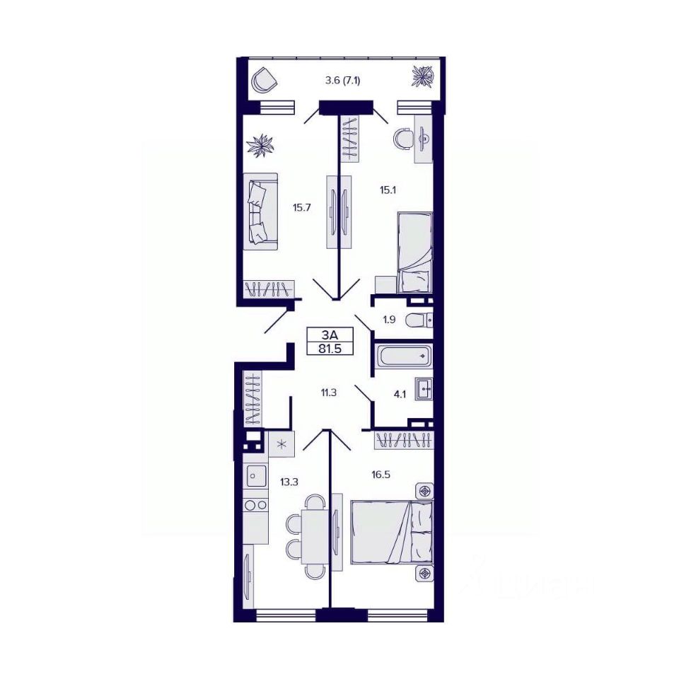 Общая площадь81,5 м²