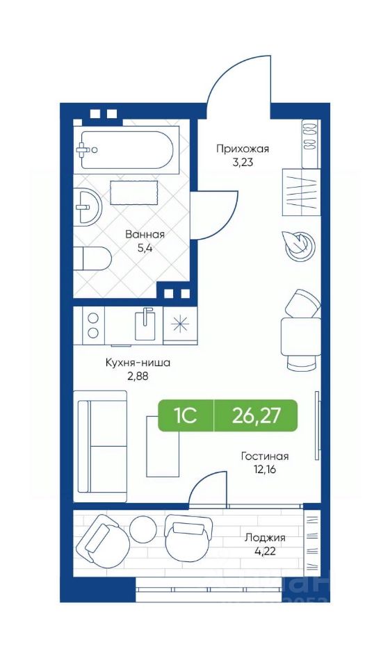 Общая площадь25,98 м²