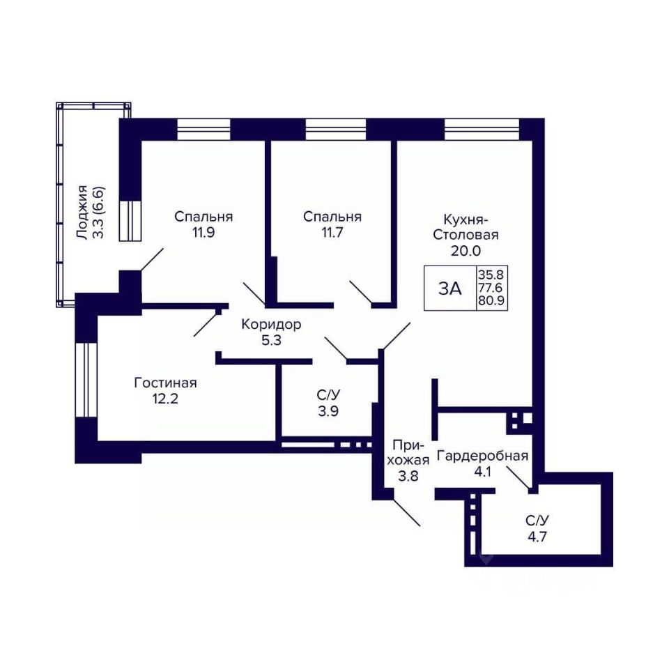 Общая площадь80,9 м²