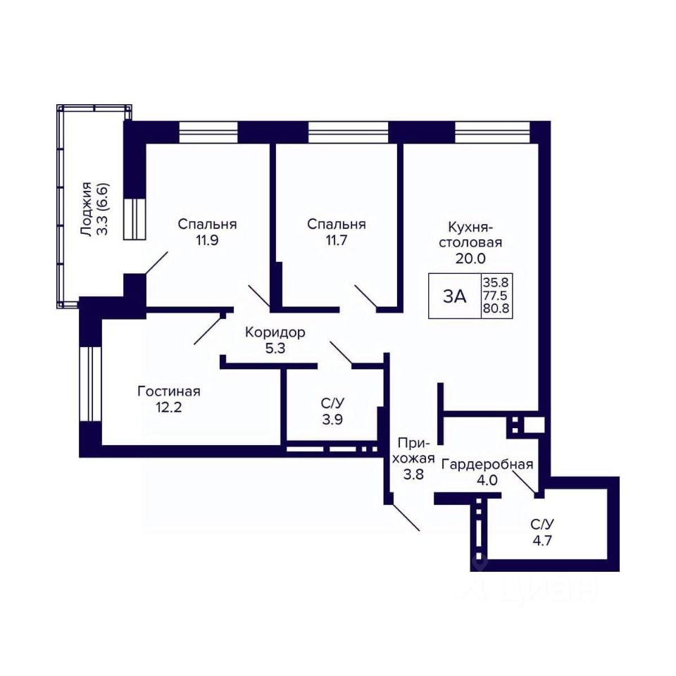 Общая площадь80,8 м²