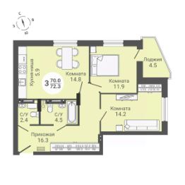 Продаётся 3-комнатная квартира в сданном доме (Дом 1), срок сдачи: I-кв. 2024, общей площадью 72.3 кв.м., на 12 этаже. ЖК "На Петухова" находится в Кировском районе города Новосибирска по ул. Петухова.