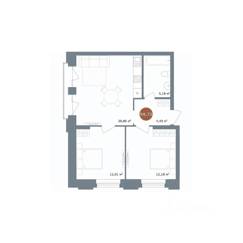 Общая площадь54,72 м²