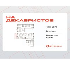 Квартира с кухней-гостиной и тремя спальнями в квартале "На Декабристов". Особенности планировки: второй санузел, окно в коридоре, гардеробная, окна в пол, рабочий кабинет, вид во двор, отдельный вход, разнесённые спальни, предчистовая отделка, терраса, постирочная, балкон.