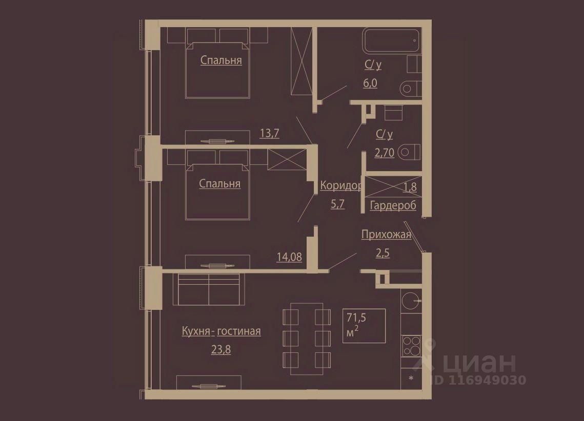 Продается 3х- комн. евро резиденция. Объект расположен в элитном клубном комплексе (Чаплыгина 54). Общая площадь составляет 71,1 кв.м.