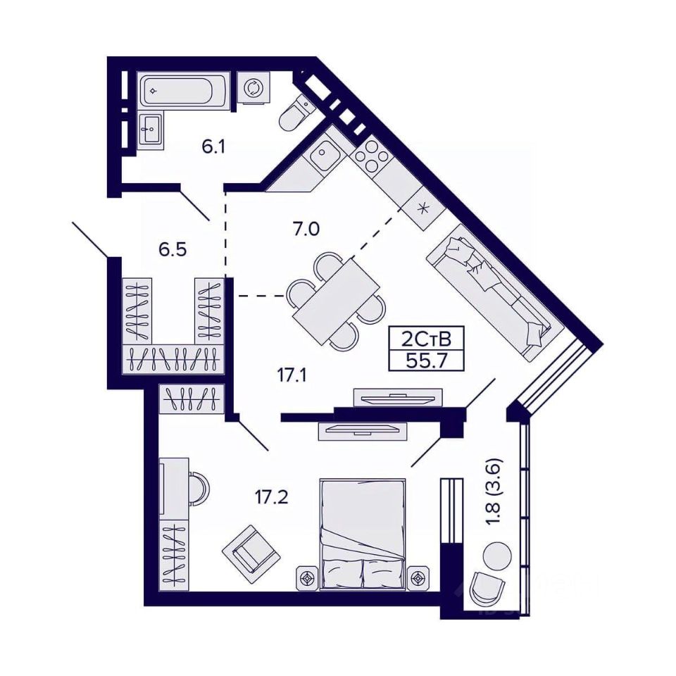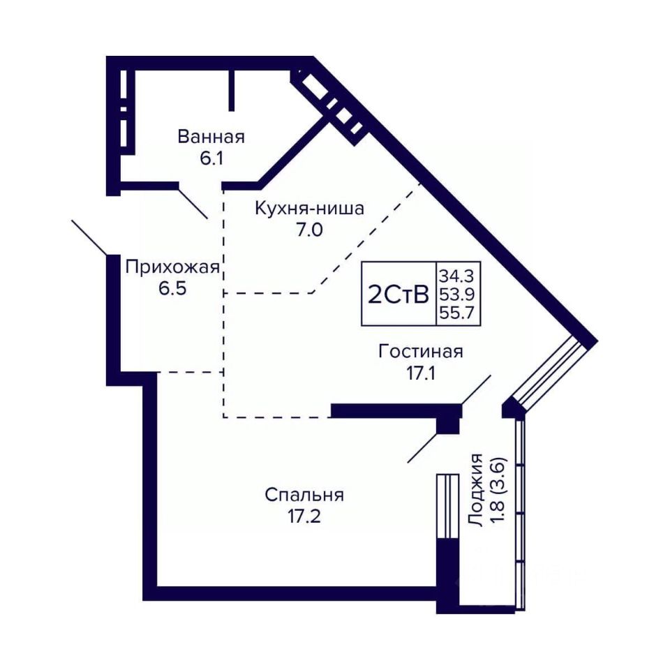 Общая площадь55,7 м²
