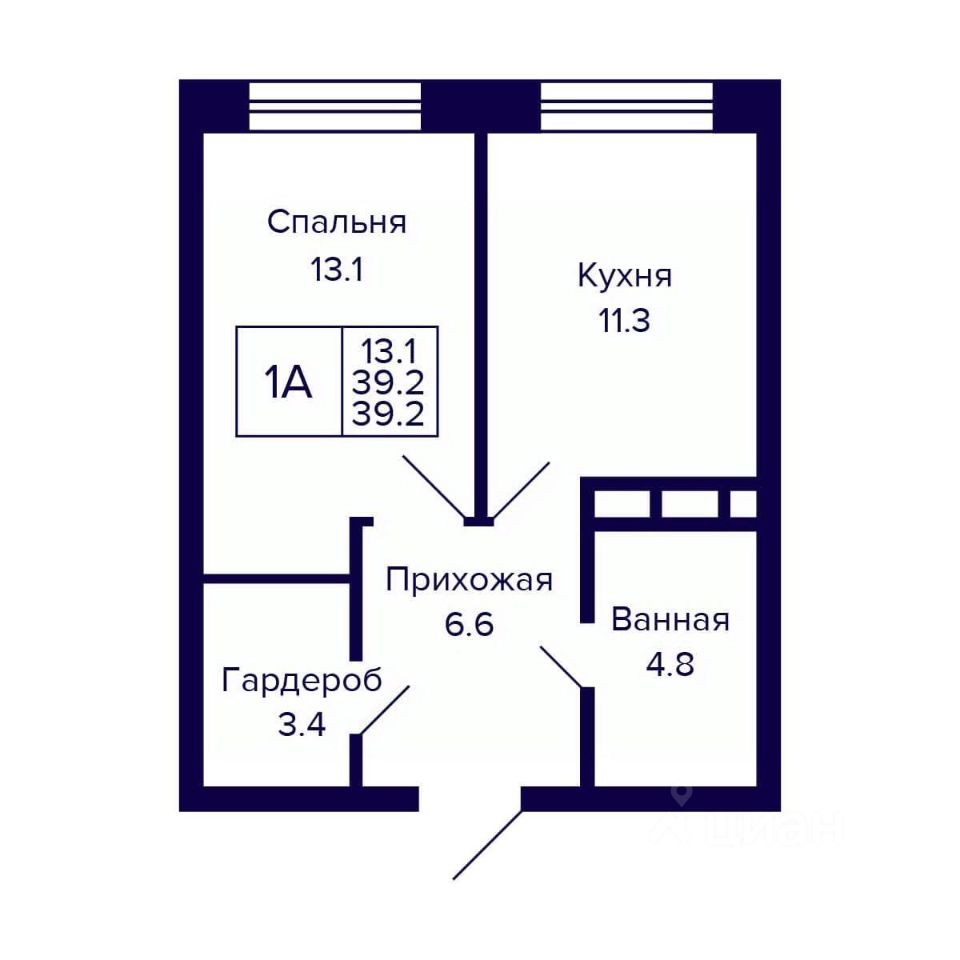 Общая площадь39,2 м²