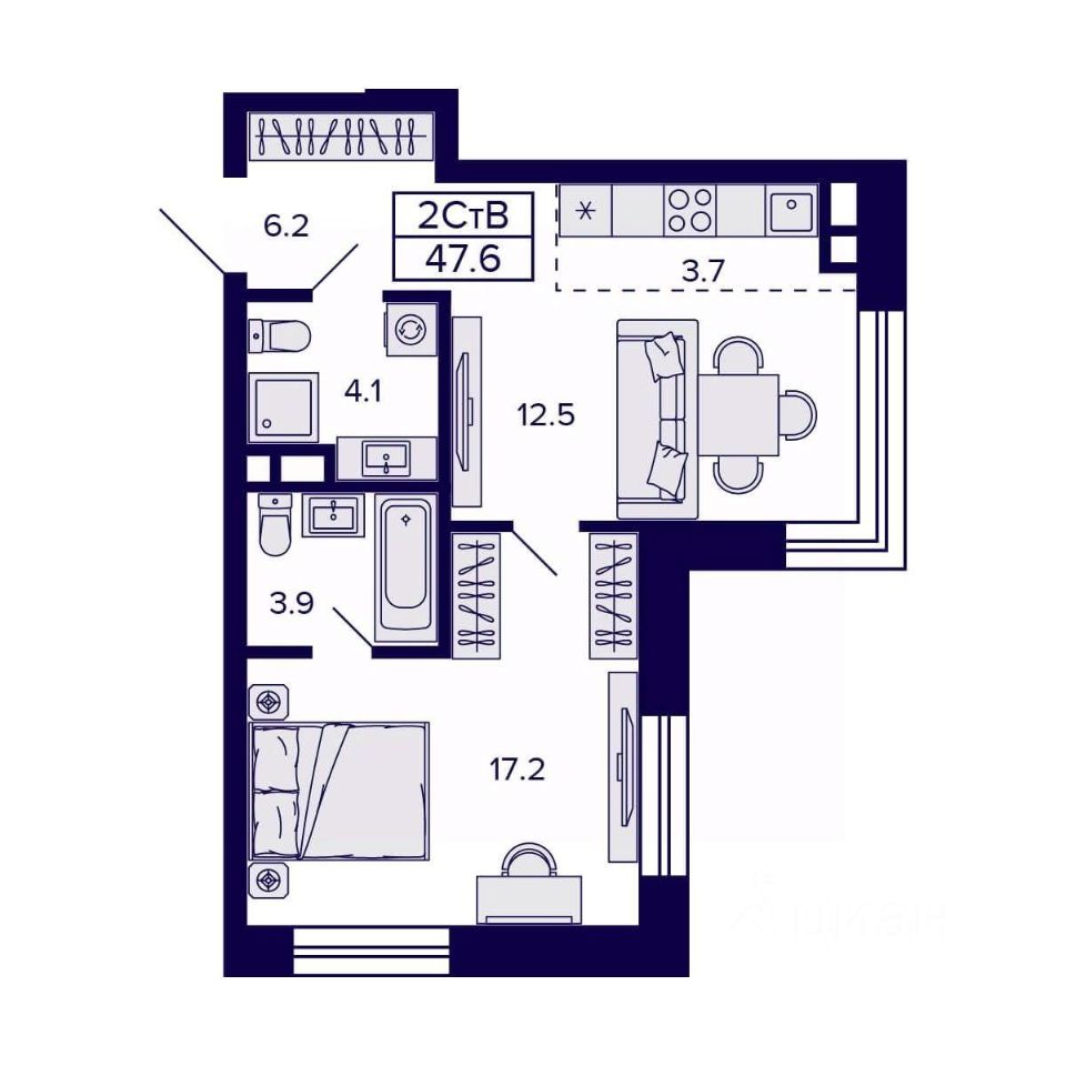 Общая площадь47,6 м²