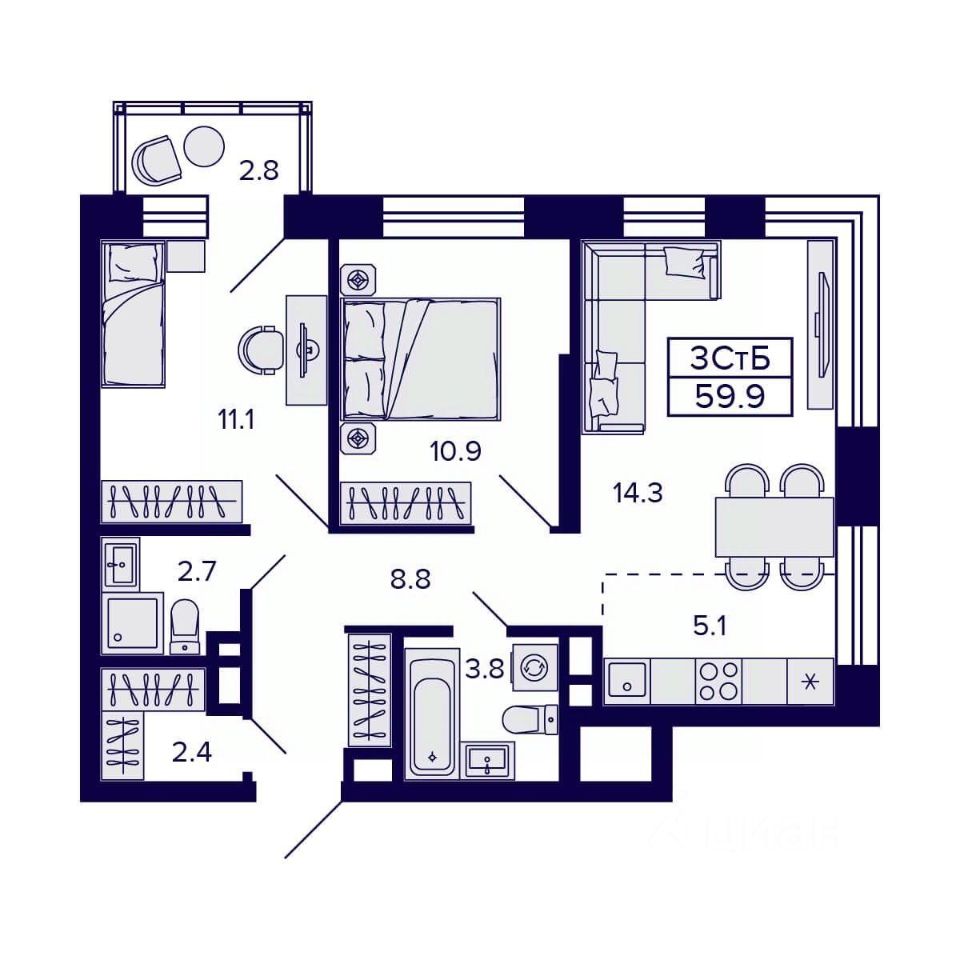 Общая площадь59,9 м²