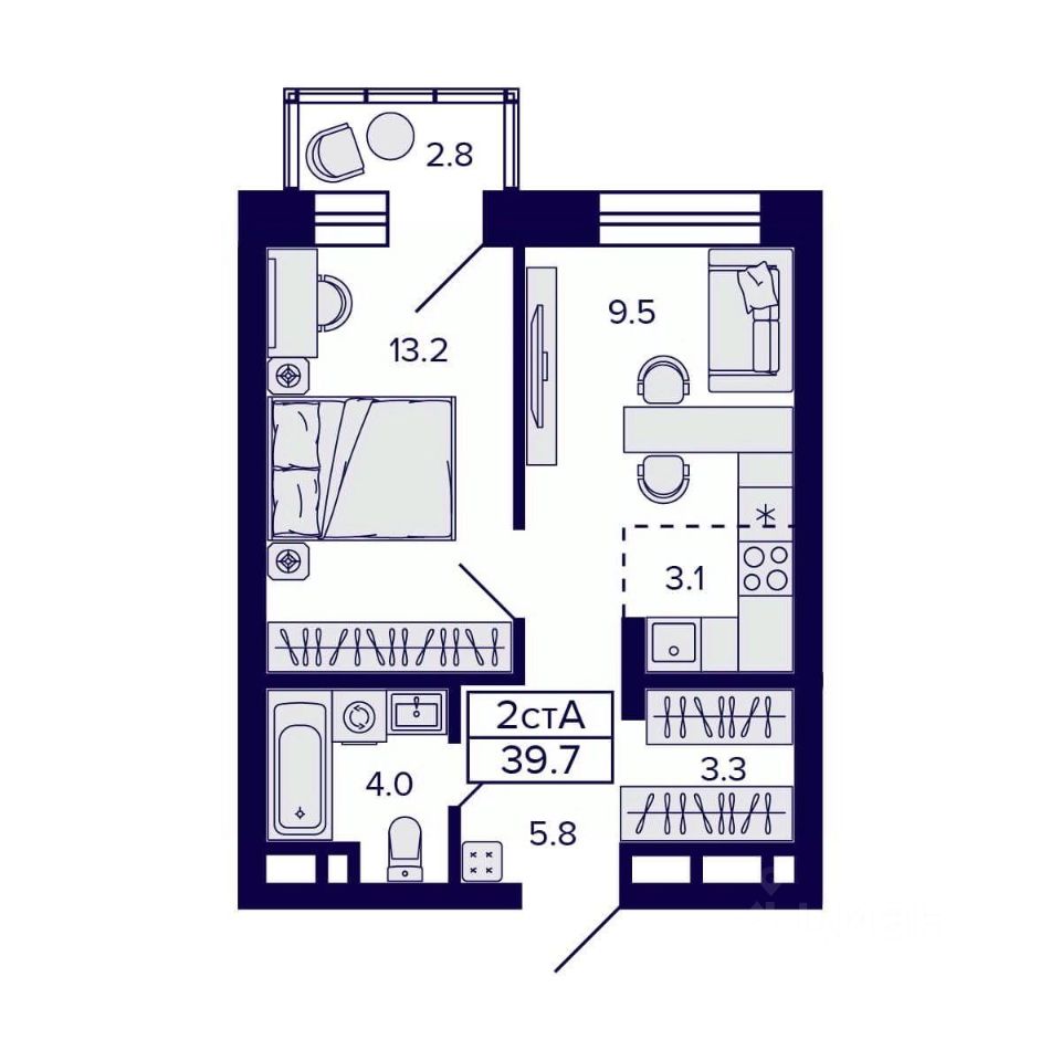 Общая площадь39,7 м²