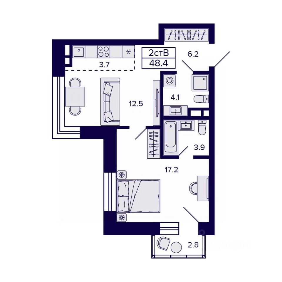 Общая площадь48,4 м²