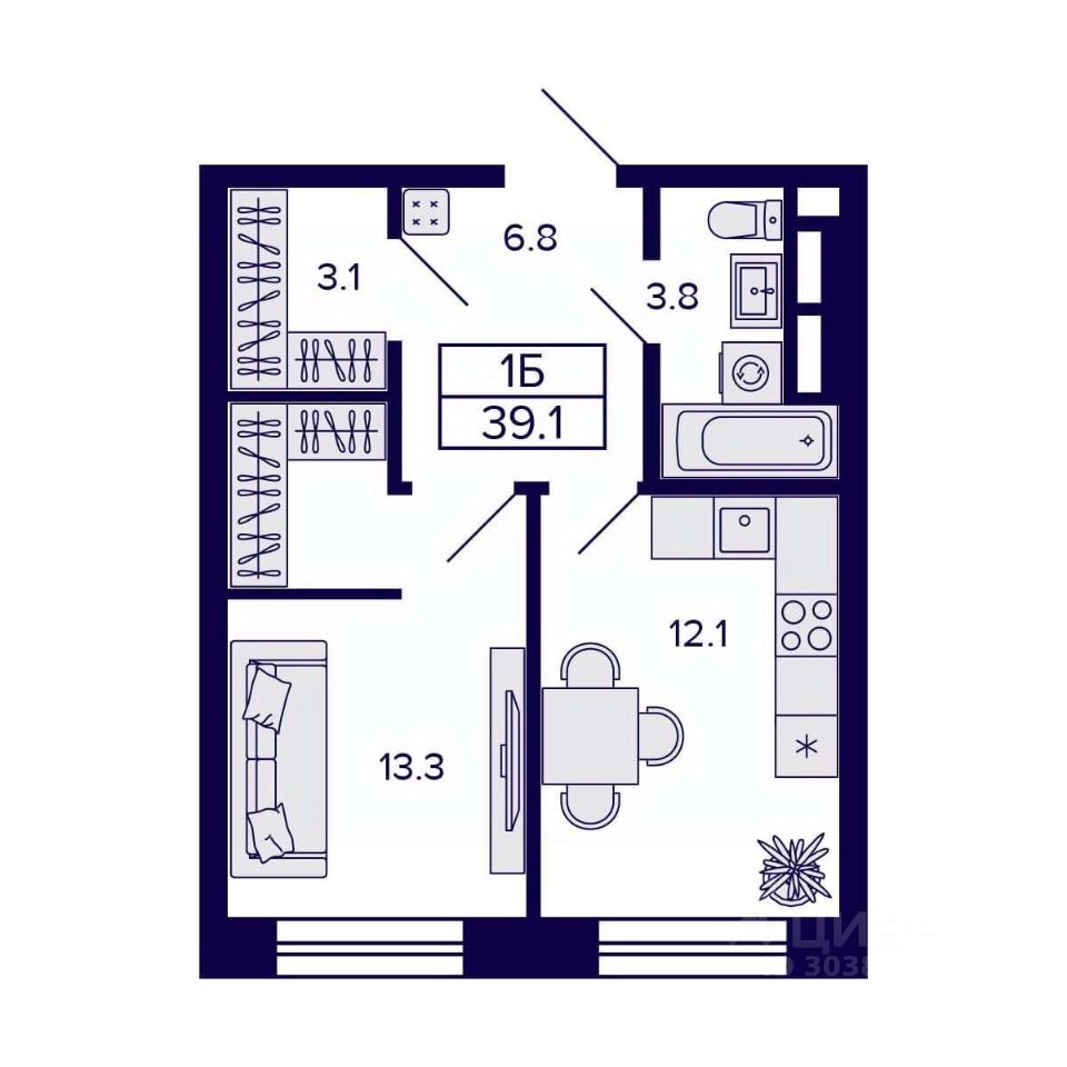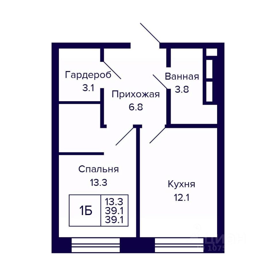 Общая площадь39,1 м²
