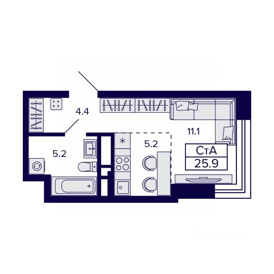 Общая площадь25,9 м²