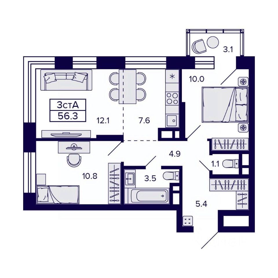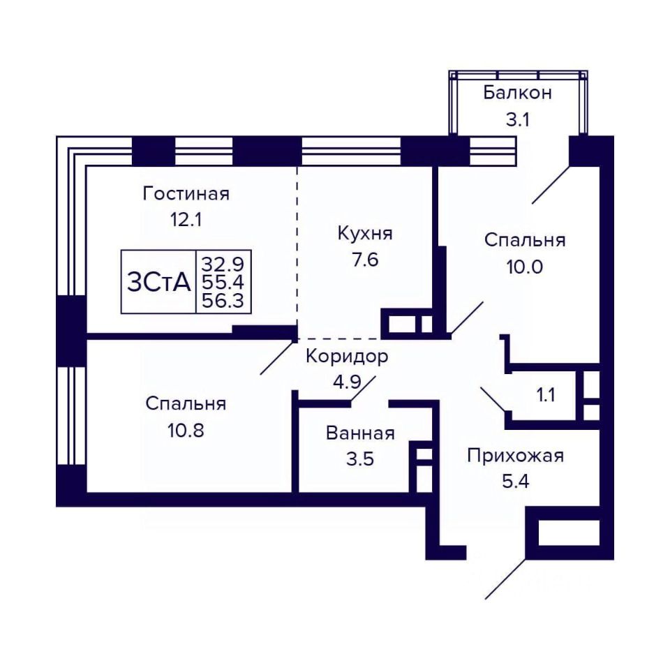 Общая площадь56,3 м²
