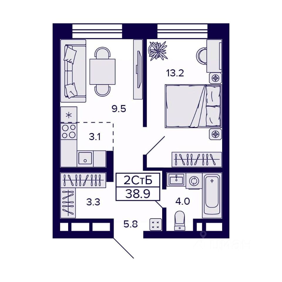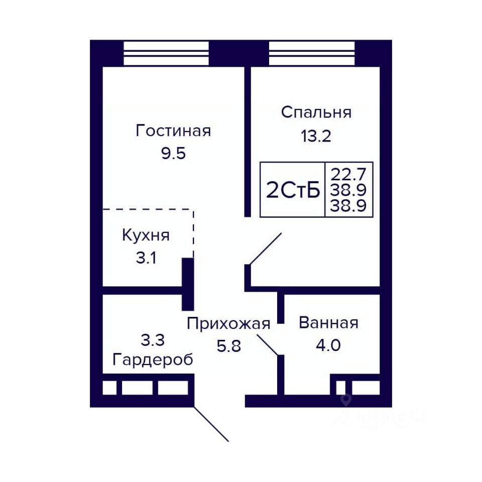 Общая площадь38,9 м²