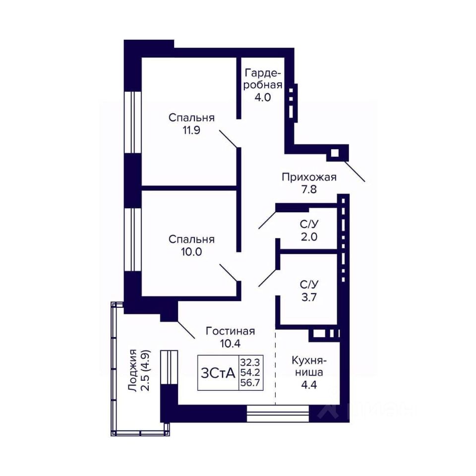 Общая площадь56,7 м²