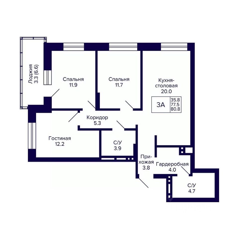 Общая площадь80,8 м²