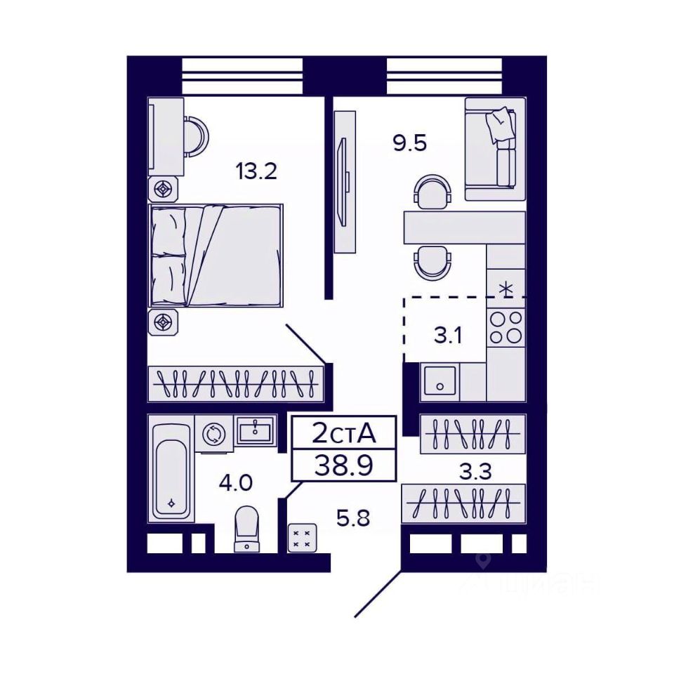 Общая площадь38,9 м²