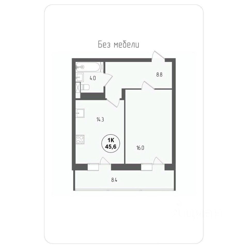 Общая площадь45,6 м²
