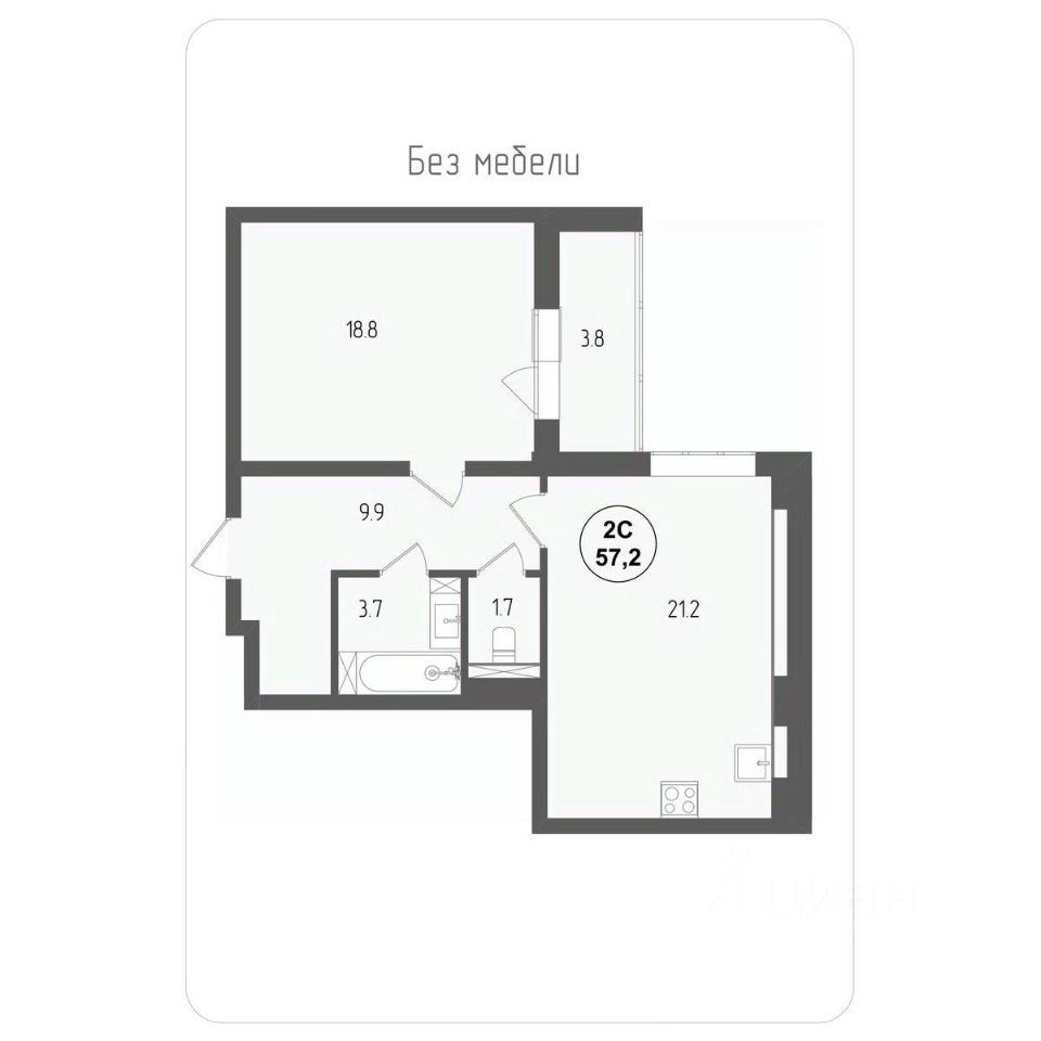 Общая площадь57,2 м²