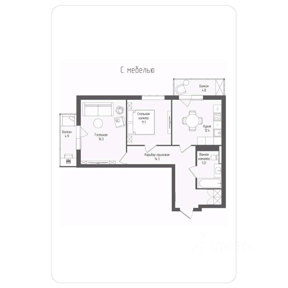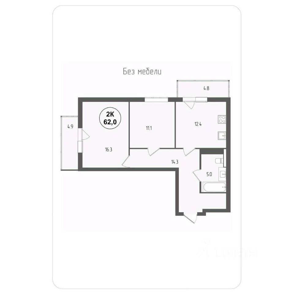 Площадь кухни12,4 м²