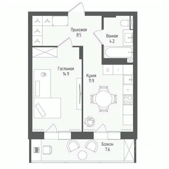 Жилая площадь14,9 м²