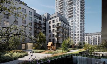 Во дворах микрорайона создано приватное пространство для жителей. Дворы имеют интенсивное озеленение и выполнены в концепции тихого сада с газоном, травами, деревьями и кустарниками. Деревья привезены из европейских питомников и высажены сразу большими. Установлены детские площадки, уличные тренажёры, спортивные корты, предусмотрены места для отдыха взрослых и прогулок.