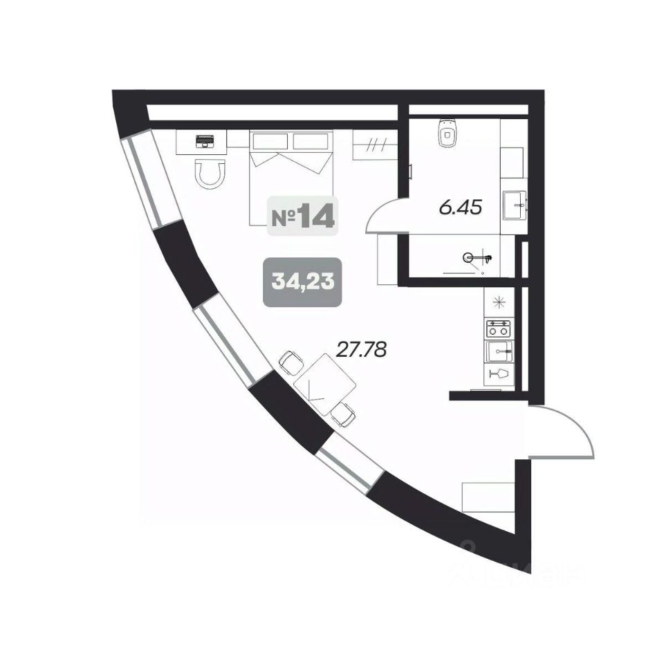 Общая площадь34,23 м²