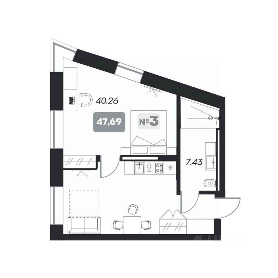 Общая площадь47,69 м²