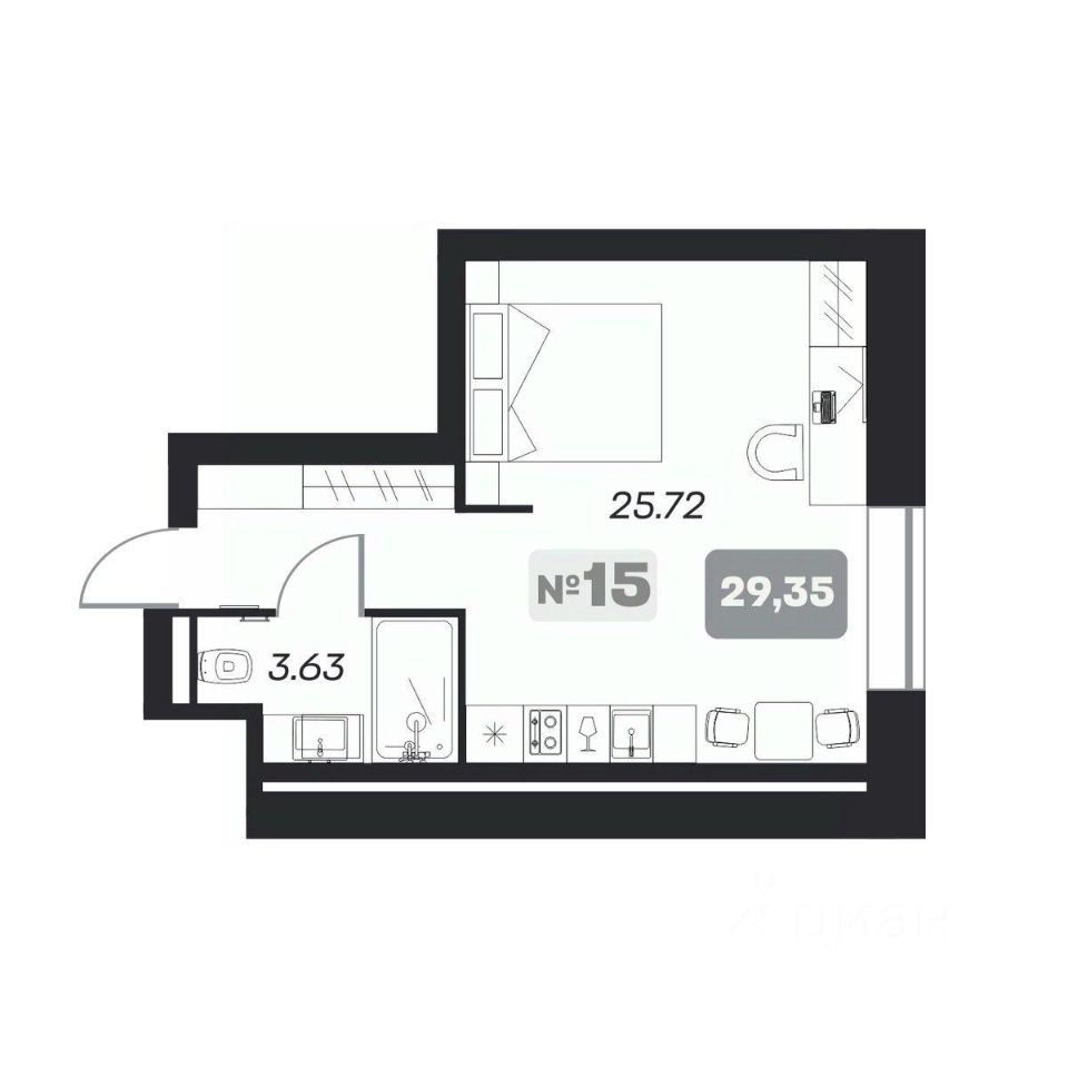 Общая площадь29,35 м²