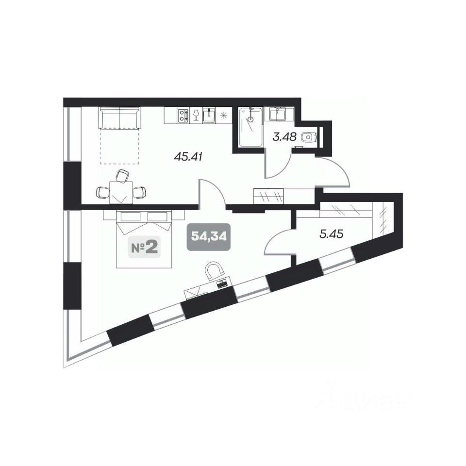 Общая площадь54,34 м²
