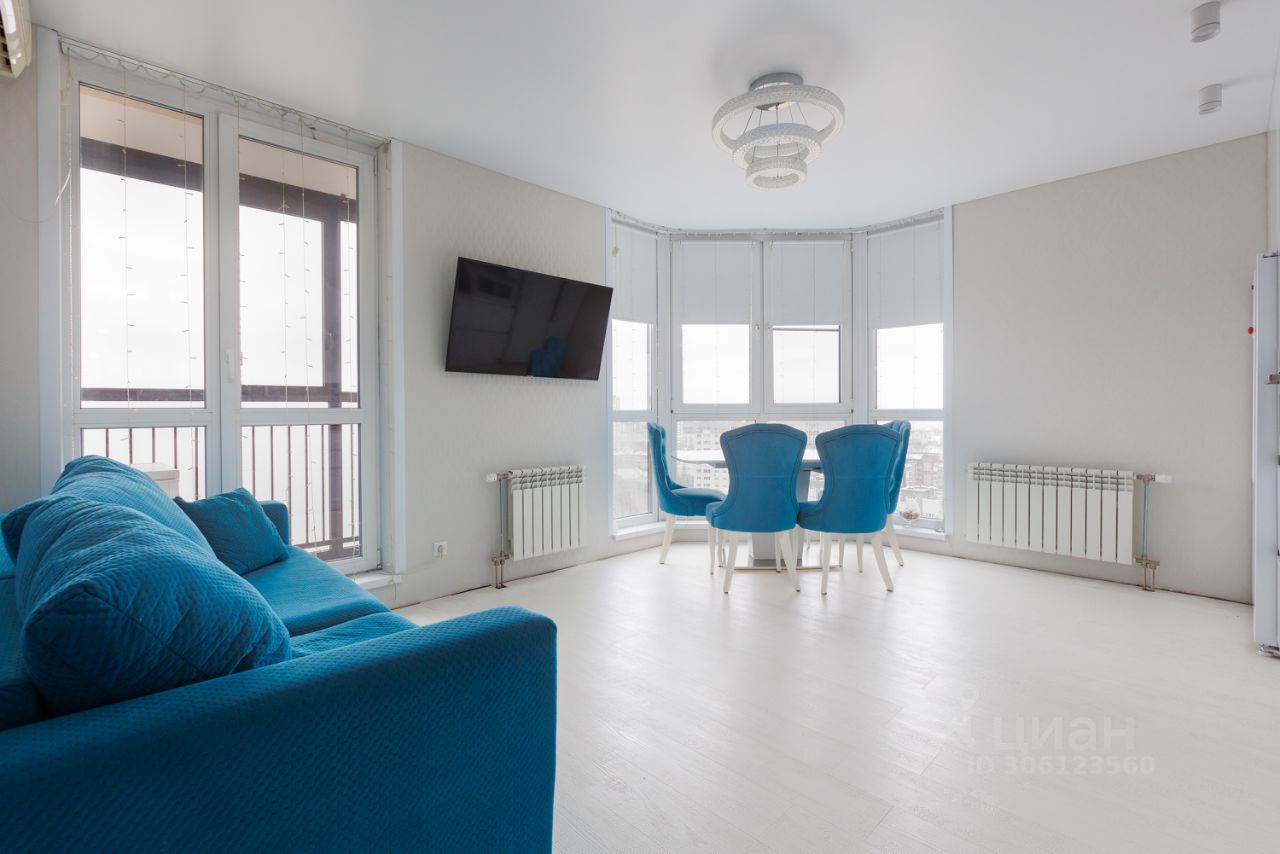 Продается просторная и светлая трехкомнатная квартира с дизайнерским ремонтом, расположенная по адресу: Новосибирск, Кировский район, Северо-Чемской жилмассив, улица Аникина, 16. Квартира находится на 21 этаже 25-этажного монолитно-кирпичного дома 2018 года постройки. Общая площадь квартиры составляет 97 кв. м, высота потолков — 2.8 метра.