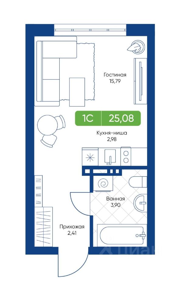 Общая площадь25,08 м²