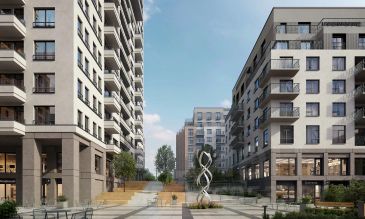 Во дворах микрорайона создано приватное пространство для жителей. Дворы имеют интенсивное озеленение и выполнены в концепции тихого сада с газоном, травами, деревьями и кустарниками. Деревья привезены из европейских питомников и высажены сразу большими. Установлены детские площадки, уличные тренажёры, спортивные корты, предусмотрены места для отдыха взрослых и прогулок.