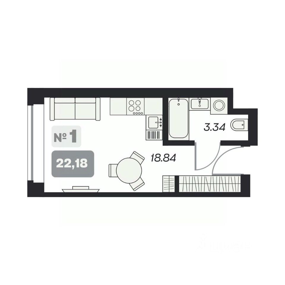 Общая площадь22,18 м²