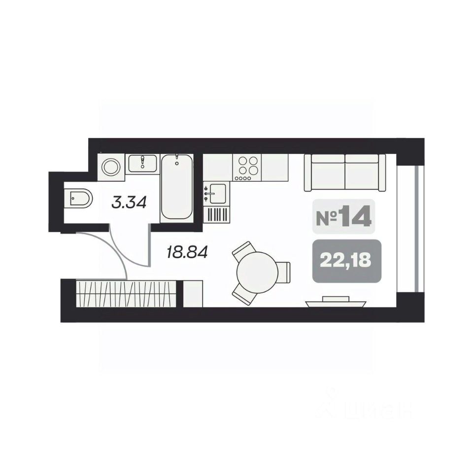 Общая площадь22,18 м²