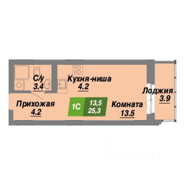 Общая площадь25,3 м²