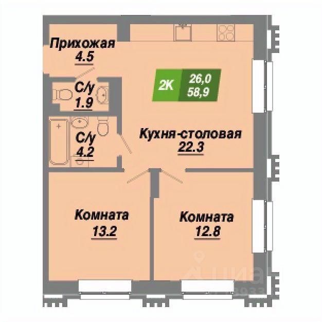 Общая площадь58,9 м²