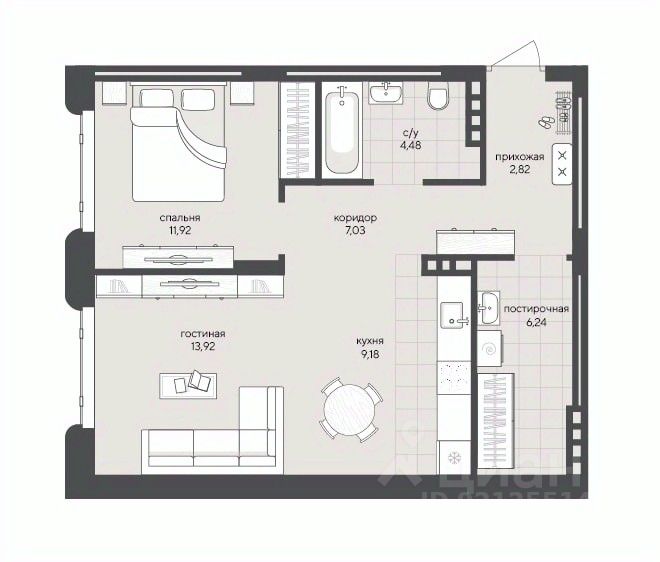 Общая площадь55,59 м²