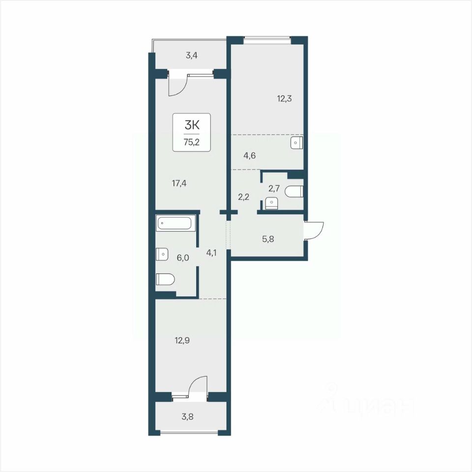 "В продаже 3-комнатная квартира, площадью 75.2, под номером 194 в новом Доме ЖК "Квартал Цветной бульвар"." Квартал возводится в Кировском районе на ул. Сибиряков-Гвардейцев, в 10 минутах от СТЦ Мега. В окружении квартала две лесные аллеи, с дорожками для прогулок. В шаговой доступности, несколько зеленых скверов, большой парк, 7 школ, детские сады и крупные продуктовые гипермаркеты.