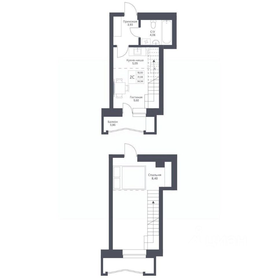 Продается 2-комн. студия с отделкой White box. Квартира расположена на 2 этаже 24 этажного монолитно-кирпичного дома в Акцентном доме "Актив" от группы компаний "Поляков".