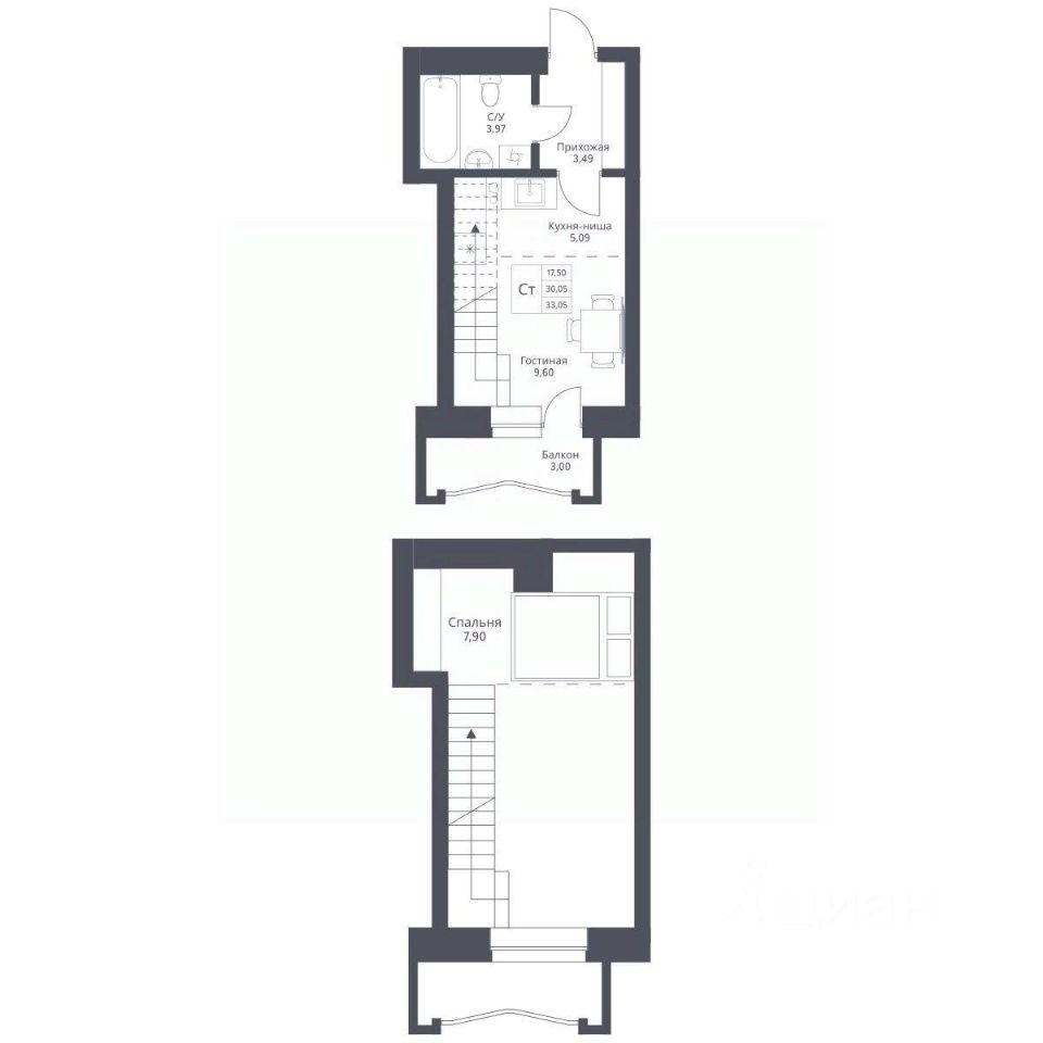 Общая площадь33,05 м²