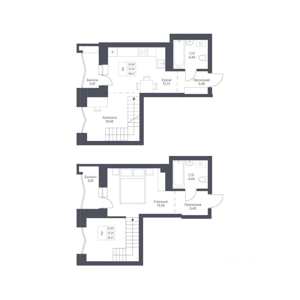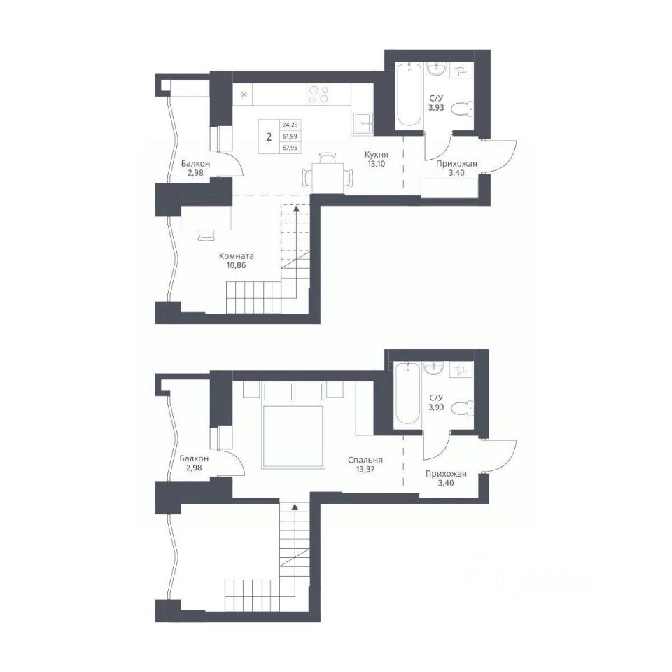 Продается 2-комн. студия с отделкой White box. Квартира расположена на 2 этаже 24 этажного монолитно-кирпичного дома в Акцентном доме "Актив" от группы компаний "Поляков".