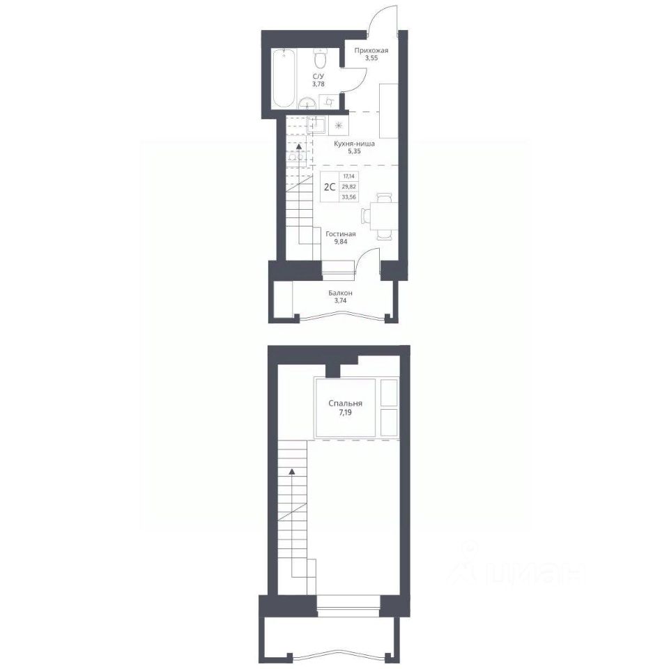 Продается 2-комн. студия с отделкой White box. Квартира расположена на 2 этаже 24 этажного монолитно-кирпичного дома в Акцентном доме "Актив" от группы компаний "Поляков".