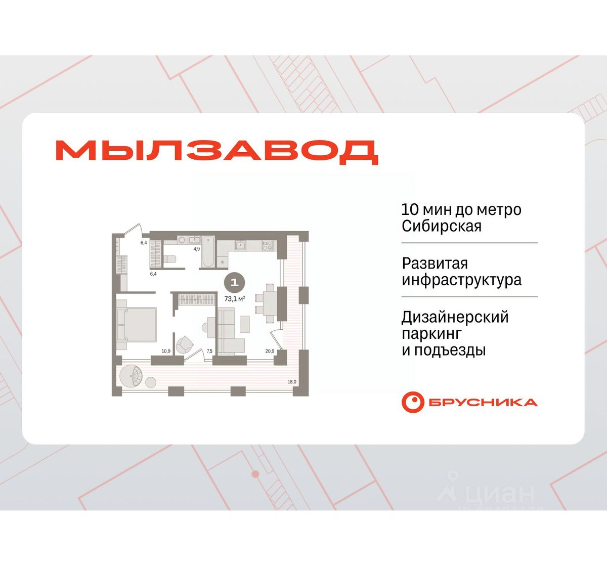 Квартал состоит из двух 9-этажных урбан-вилл, четырех 17-этажных и трех 30-этажных башен, объединенных стилобатом. В основу концепции "Мылзавода", которую Брусника разрабатывала совместно с голландскими и немецкими архитекторами, лег принцип mixed-use . Он предполагает совмещение в пределах одной локации жилого, рабочего, коммерческого и культурно-развлекательного пространств. На первых этажах домов разместятся продуктовые магазины, кафе, офисы, а также частный детский сад на 100 мест.