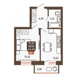Общая площадь42,63 м²
