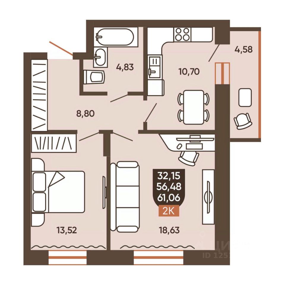 Общая площадь61,14 м²