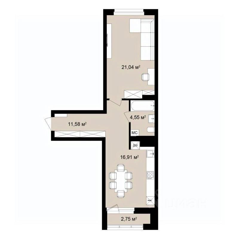 Общая площадь55,55 м²