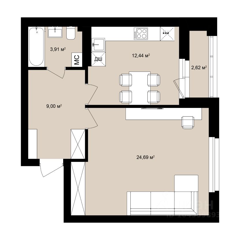 Общая площадь53,09 м²