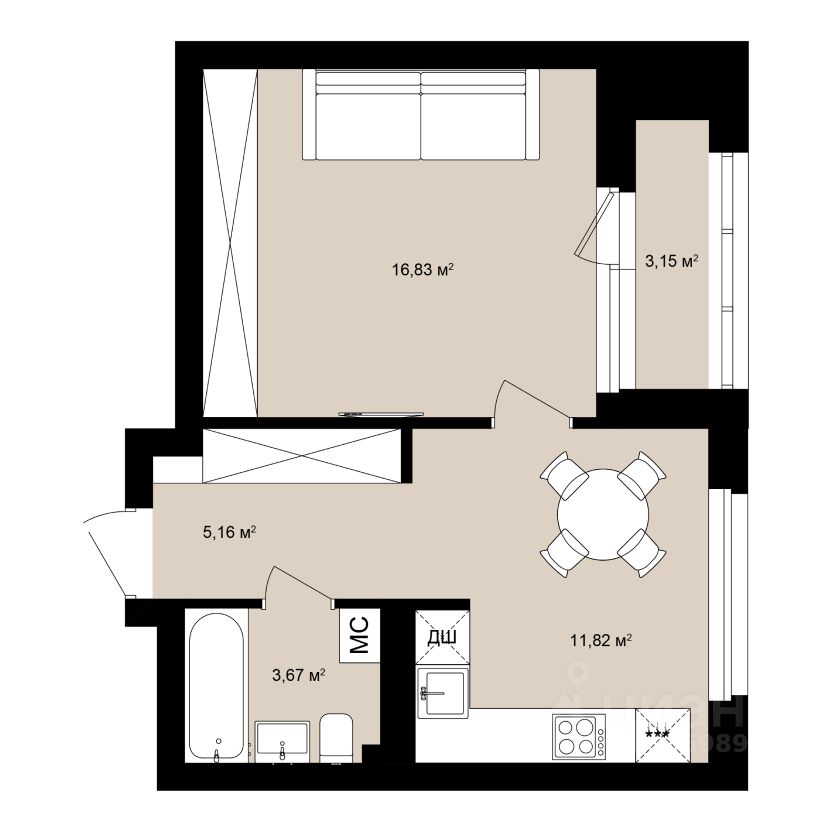 Жилая площадь17,9 м²