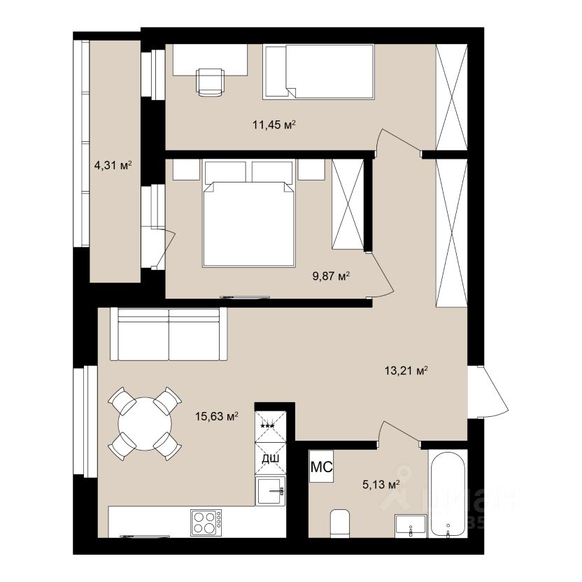 Общая площадь59,7 м²